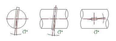 其他類型的傳感器是將其檢測桿插入工藝管道中,安裝時(shí)除了總壓孔應(yīng)正對流速方向外,保證傳感器檢測桿與工藝管道的軸線垂直,其允許的位置角壓偏差如圖五所示。