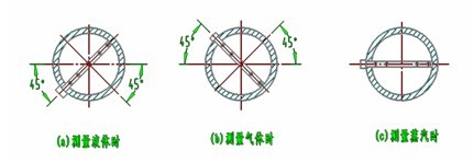 對于垂直管道傳感器可安裝在管道水平面沿管道圓周360的任何位置上,高低壓引壓管應(yīng)處于同一平面上,由圖六(a)所示;當(dāng)測量液體時(shí),應(yīng)向下側(cè)傾斜安裝如圖六(b)所示;當(dāng)測量氣體的蒸氣時(shí)應(yīng)向上傾斜安裝如圖六(c)所