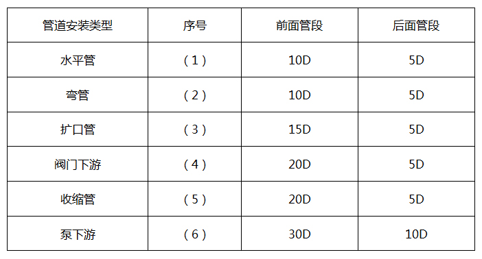 下圖展示了經(jīng)常遇到的幾種情況所要求的直管段。